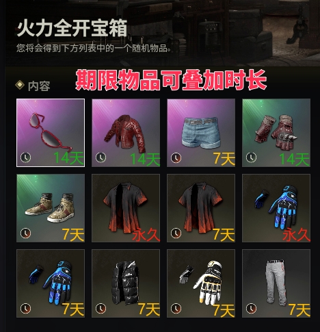 火力全开衬衫分为永久版本、7天版本随机开出!!!